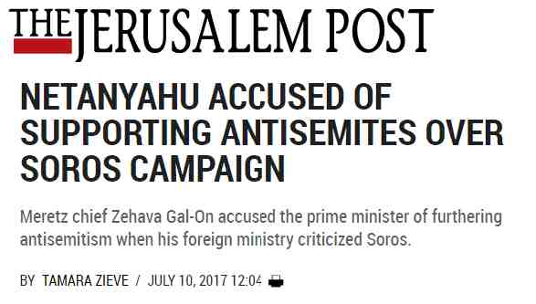 The Jerusalem Post quoted Zehava Gal-On, former head of Meretz as saying that ‘this won’t be the last time that neo-Nazis quote Netanyahu,” accusing him of “supporting world antisemitism” after the Foreign Ministry released a statement legitimizing criticism of Hungarian- American billionaire George Soros. William Echikson in Politico echoed this: