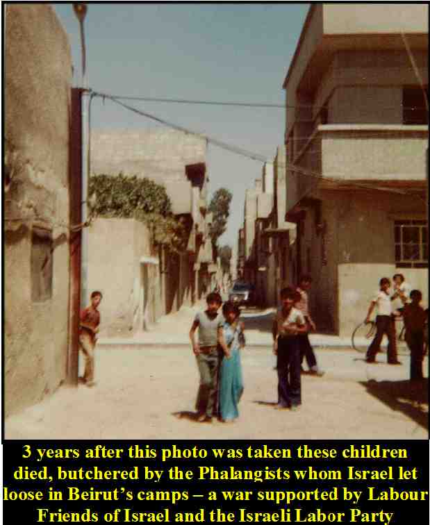 children playing in the streets and alleways of the refugee camps – 3 years after this photo was taken most if not all of them would have been slaughtered by Israel’s Phalangist allies