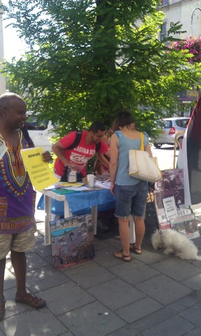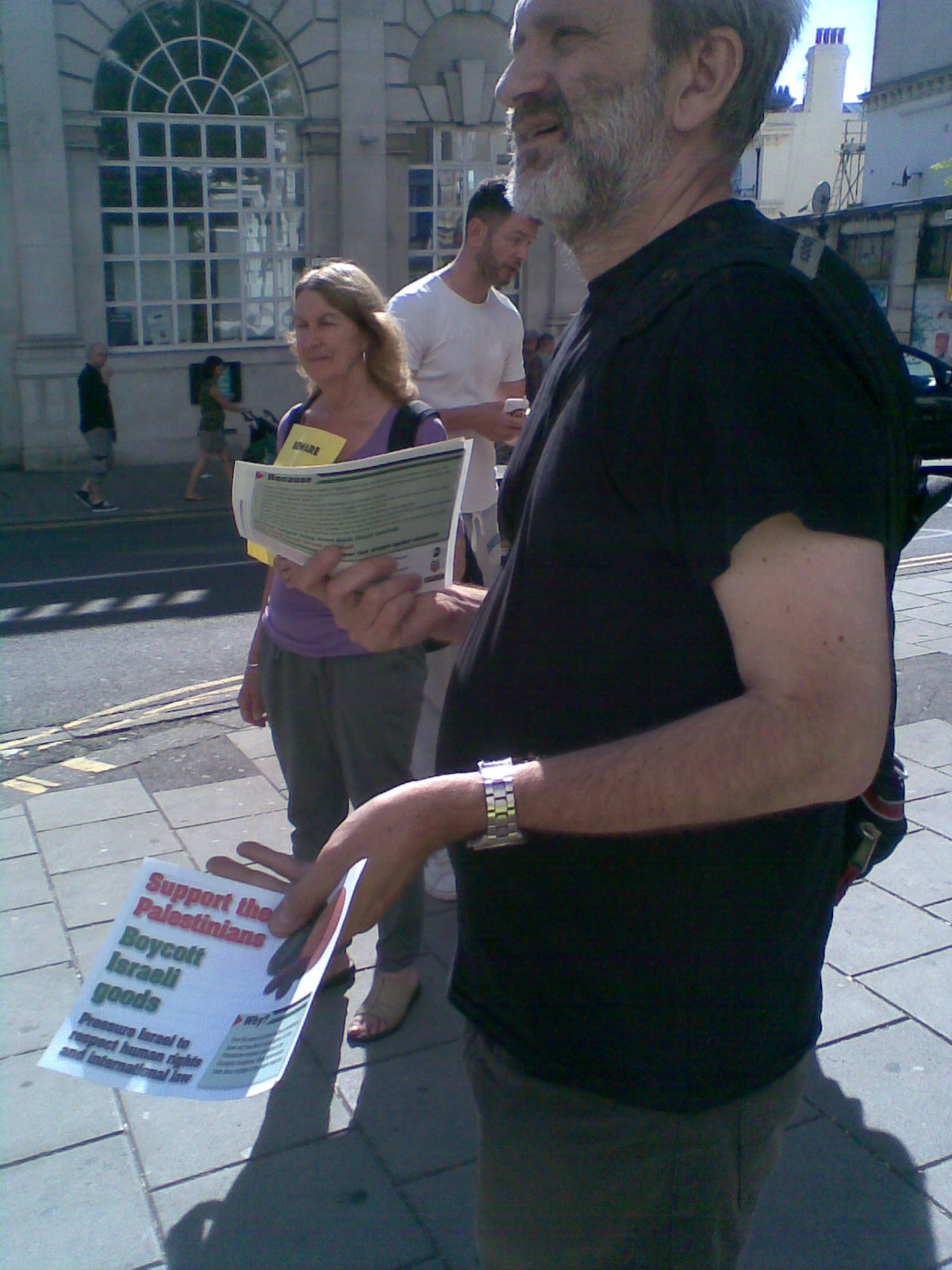 Today, was the beginning of a large picket and stall outside the Israeli shop Sodastream. A number of our opponents, including two mad Christian Fundamentalists, were on hand, but the vast majority of Brighton people passing by gave us their support and we ran out in 2 hours of over 500 leaflets. There are a number of pictures of our picket and also a video, whose quality leaves a lot to be desired but gives a flavour of the exchanges.