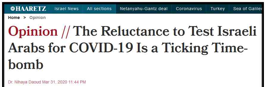 [see The Reluctance to Test Israeli Arabs for COVID-19 Is a Ticking Time-bomb]