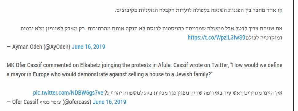 As Ofer Casif, the Jewish member of Hadash in the Knesset wrote on Twitter,