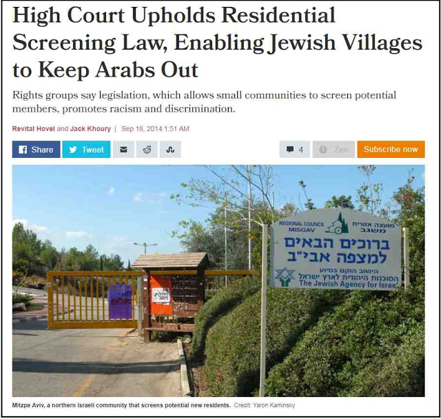 These gated communities do not allow Arab Israelis to wander through them and have picnics in their parks.