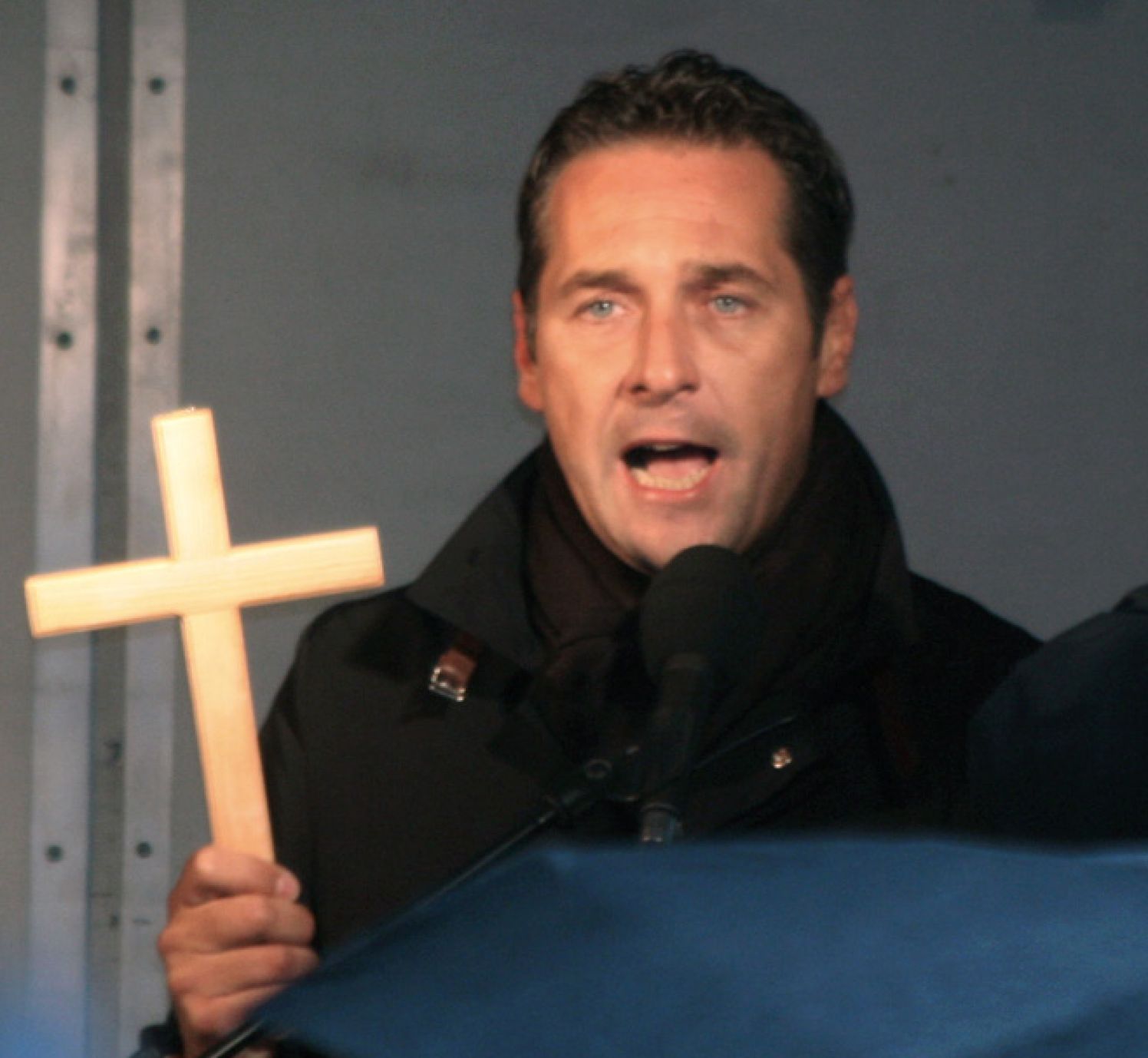 | Heinz-Christian Strache, head of the far-right Austrian Freedom Party, at an anti-Muslim demonstration in Vienna. 14 May 2009Wikimedia |