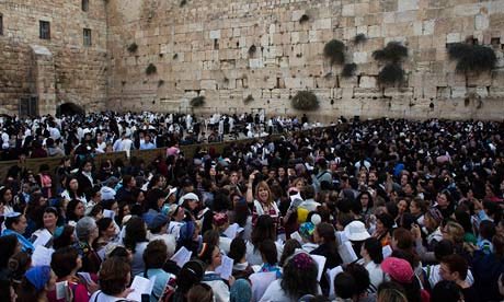 | Women at the women’s section of the Wailing Wall in Jerusalem – there is fierce Orthodox opposition to the presence of women, who are considered ‘unclean’ |
