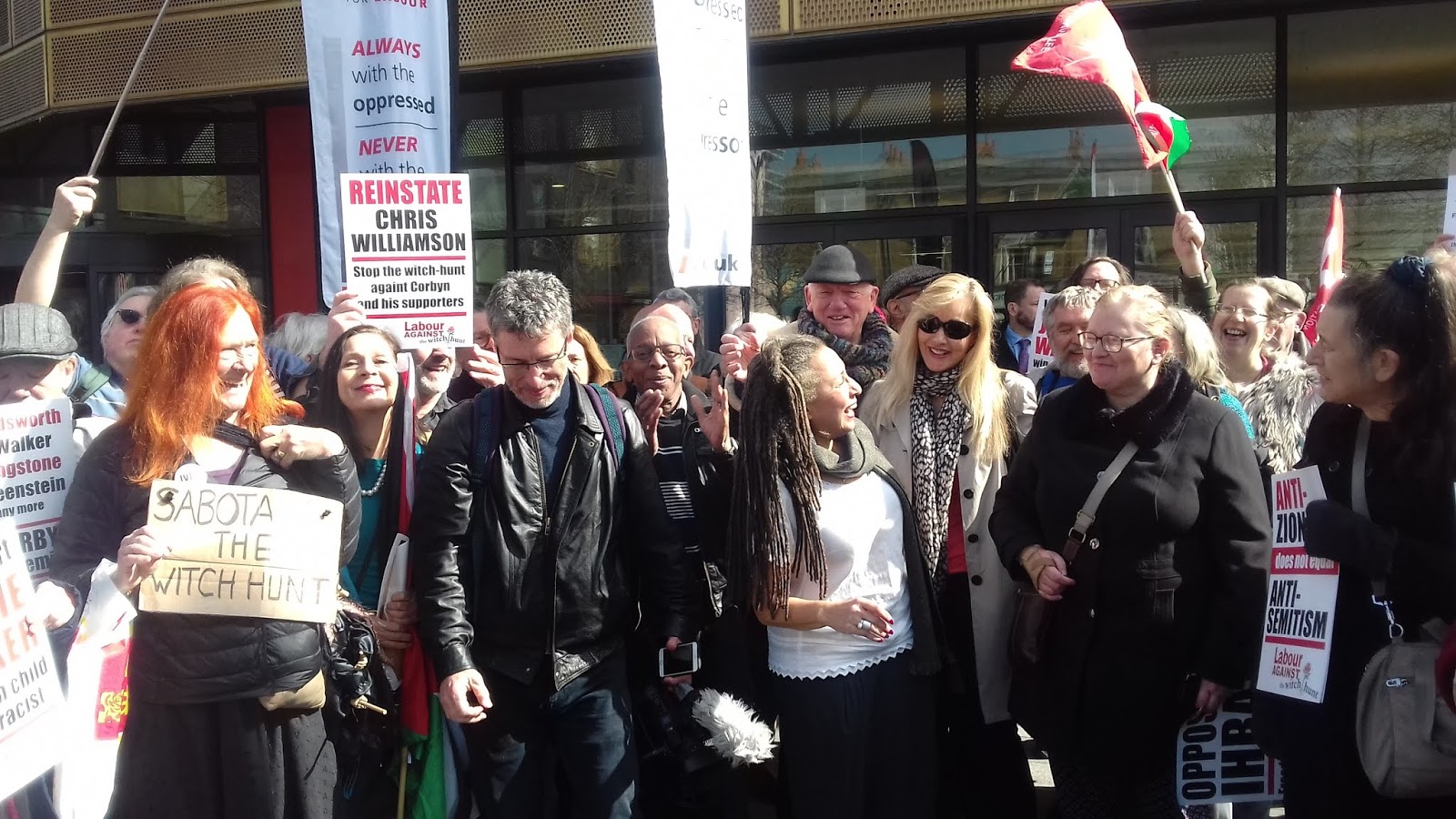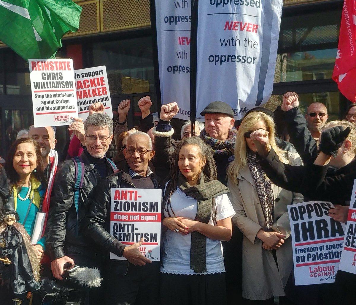 It was a sunny spring morning with a carnival atmosphere outside as the long-awaited and long delayed hearing on trumped up charges of ‘anti-Semitism’ against Jackie Walker were at long last going to be heard. Except they weren’t as Jackie walked out shortly after they began.