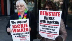 Why it is that 77% of Labour Party members say that anti-Semitism is not a major issue in the Labour Party? Why is it that the right-wing press, from the Mail to the Sun and Express are all so concerned about ‘anti-Semitism’ in the Labour Party yet do not hesitate to demonise Black people, Muslims and refugees to the extent of hiring as a columnist Katie ‘refugees are cockroaches’ Hopkins as a columnist. Today was a marvelous celebration of the opposition to the Labour Party’s racist witch-hunt. It followed Labour Against the Witchhunt’s meeting last night with Ken Livingstone, Graham Bash and Jackie Walker which was attended by 150 people near Holborn. The majority of Labour Party members are not convinced by the fake anti-Semitism campaign. It is to the shame of much of the Labour Left, the so-called Campaign Group of Socialist MPs, that they haven’t defended both Jackie and Chris Williamson MP. Chris Williamson sent a message of solidarity to the rally which Stan Keable of LAW read out. It is shameful that he is the only Labour MP to have done so. Clive Lewis, Diane Abbot and David Lammy – all Black MPs have looked the other way, as have people like Laura Pidcott, Cat Smith and Dennis Skinner. The Left in the PLP has remained silent as a witchhunt of anti-racists has taken place of which Jackie is but the latest casualty. The only beneficiary will be Tom Watson and the TIG group. It was good to see another victim of this racist witchhunt, Marc Wadsworth at the demonstration today. Marc is presently engaged in litigation with the Labour Party and he has been disgracefully attacked, as has Jackie, by the turncoat racist, Jon Lansma, who heads Momentum. Below is Jackie’s statement: Tony Greenstein