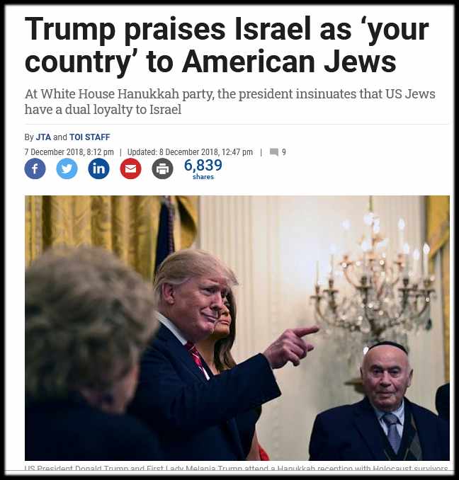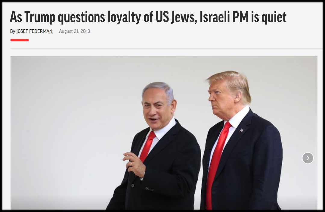 We only have to think of Donald Trump’s remarks: “I think any Jewish people that vote for a Democrat, I think it shows either a total lack of knowledge or great disloyalty.” And who were they disloyal to? Well Trump clarified this too. Israel! But Netanyahu and the Zionist chorus showed no interest in genuine anti-Semitism. For the Zionists Trump’s support for Israel trumps his anti-Semitism.
