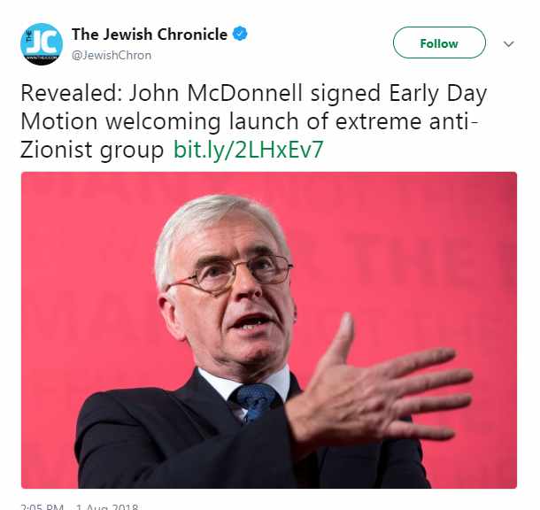 emerged of John McDonnell, who has done his best to appease the Zionist lobby, telling