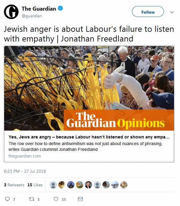 Twitter that this meant that the false anti-Semitism allegations would start up