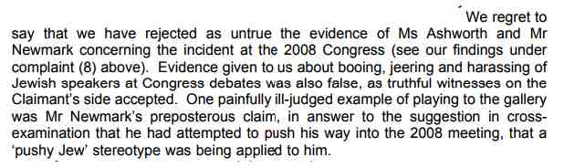 Mr Newmark concerning the incident at the 2008 Congress… Evidence given to us