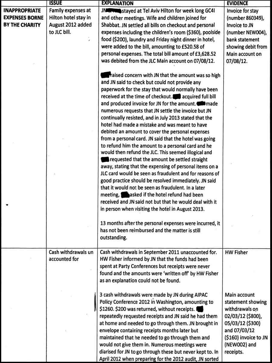 personal expenses to the JLC — including holidays in Israel and VIP transport