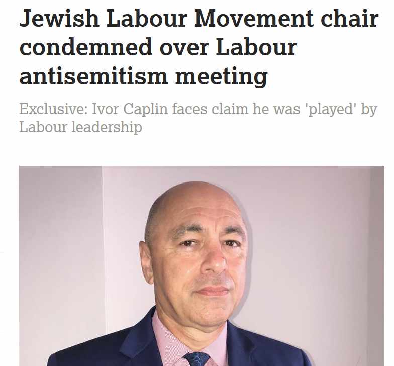 | The JLM’s new Chair, Ivor Caplin, got the line wrong – he forgot that the whole purpose of the fake antisemitism attacks is not to solve the ‘problem’ but to continue the war until Corbyn is removed |