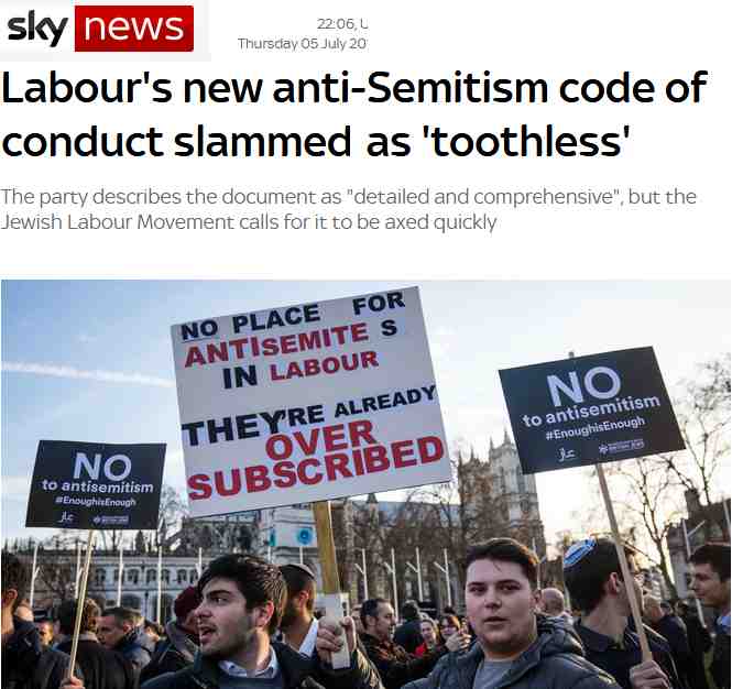 believing accusations of antisemitism are Zionist “smears”.’ Sky News reports that ‘Labour’s