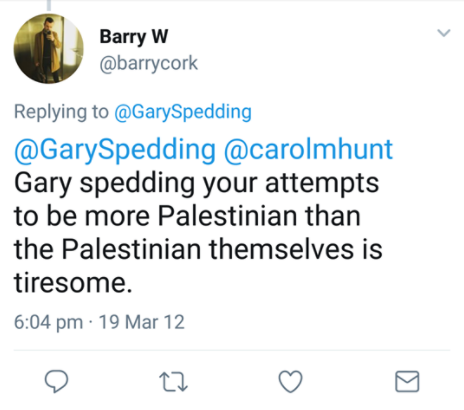 no place in campaigns of solidarity with the Palestinians’ Spedding implied