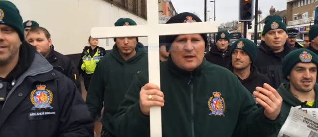 | Paul Besser on right back row with Paul Golding (with cross) of Britain First |