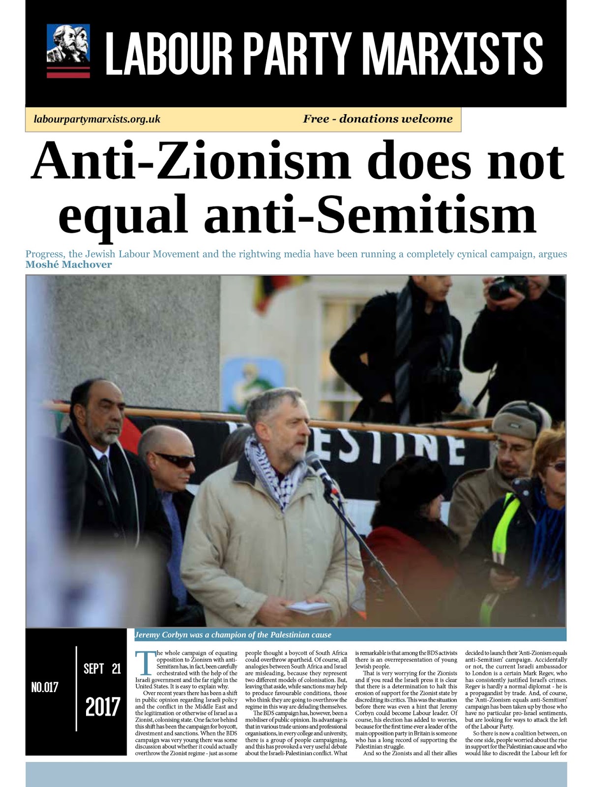 It contained an article by Professor Moshe Machover, an Israeli anti-Zionist