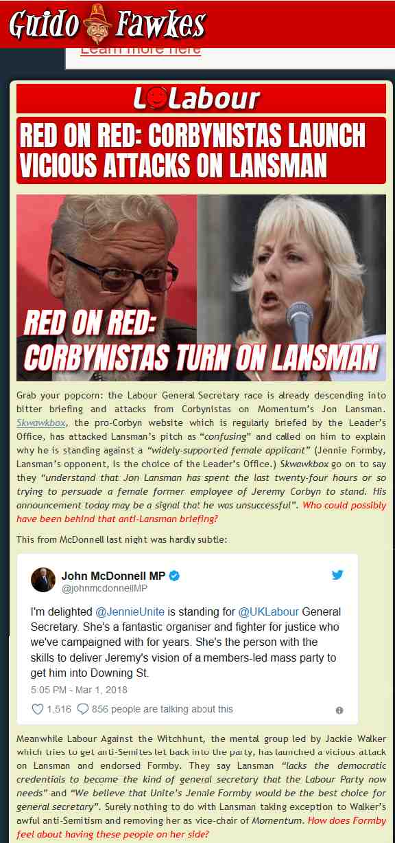 to Lansman’s defence when Labour Against the Witchhunt criticised him, today it is Guido Fawkes, the