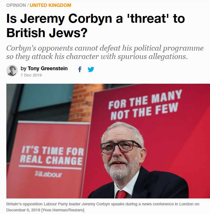 I also wrote an article last week for Al Jazeera Is Jeremy Corbyn a ‘threat’ to British Jews? about the suggestion that Corbyn represented an ‘existential threat’ to British Jews as the Jewish Chronicle and other Zionist newspapers had written. Finally, on the eve of poll, I laid the blame for what was to come on his ‘strategic advisor’ Seamus Milne who had plotted Corbyn’s disastrous strategy of appeasement.