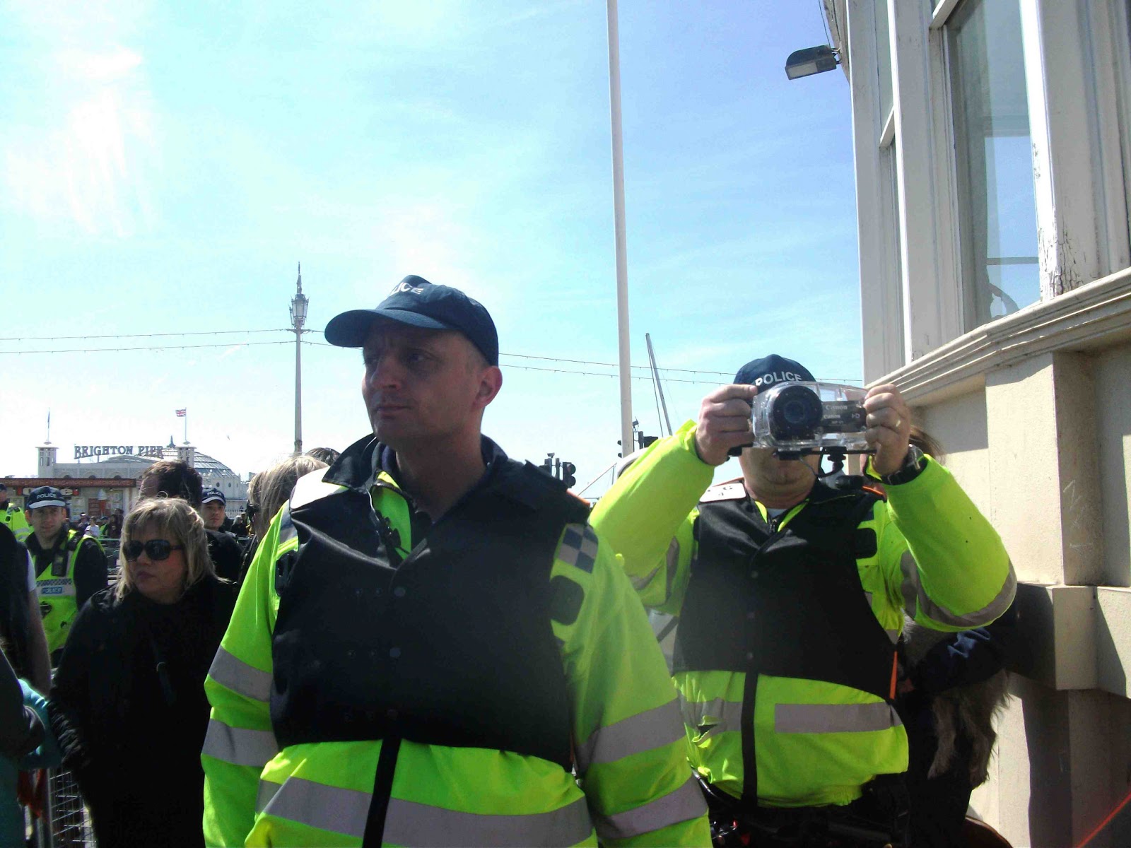 But what amazed me, on the seafront, where I confined myself to taking pictures because I am convalescing, was how every single comment from ordinary passers-by was hostile to the fascists, such as one elderly women remarking to her friend that you can’t blame a whole people (Muslims) for the actions of one individual. The EDL are a dying force and I counted between 50 and 60 on the march at the maximum. For this Sussex Police, who are always complaining of lack of resources, spent close to £1 million to impose a march that no one wants on the town.