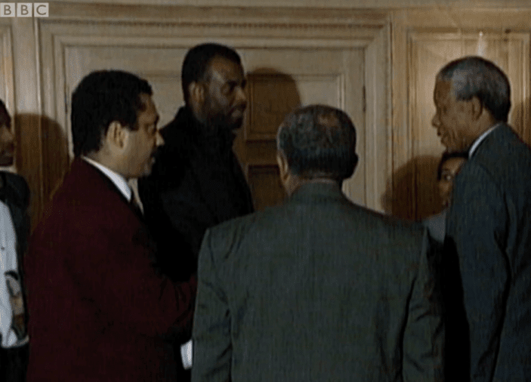 | Marc Wadsworth, left, introducing Stephen Lawrence’s family to Nelson Mandela |