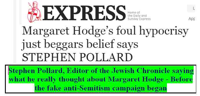 But Stephen Pollard, the Jewish editor, is an enterprising fellow. That’s why he was the founder of the Henry Jackson Society and a former editor of Richard Desmond’s Daily Express. Long forgotten is his eviscerating front page on Margaret Hodge who is now a friend in the fight against ‘anti-Semitism’. Those with long memories will remember that Desmond was Britain’s biggest pornographer with titles like Asian Babes. But Desmond too was a Zionist as well as an EDL supporter.
