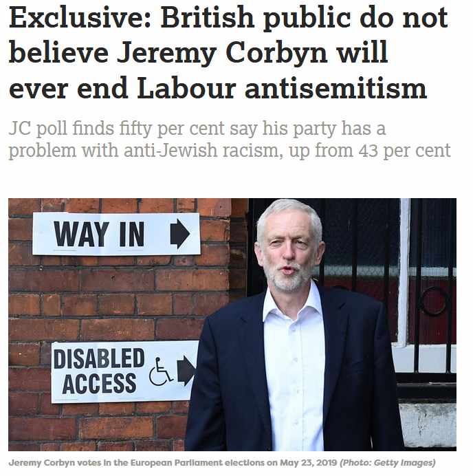 So what the poll was asking was how many people had heard of and been taken in by the non-stop propaganda blitz about ‘Labour anti-Semitism’ the sole purpose of which is to remove Jeremy Corbyn as leader of the Labour Part