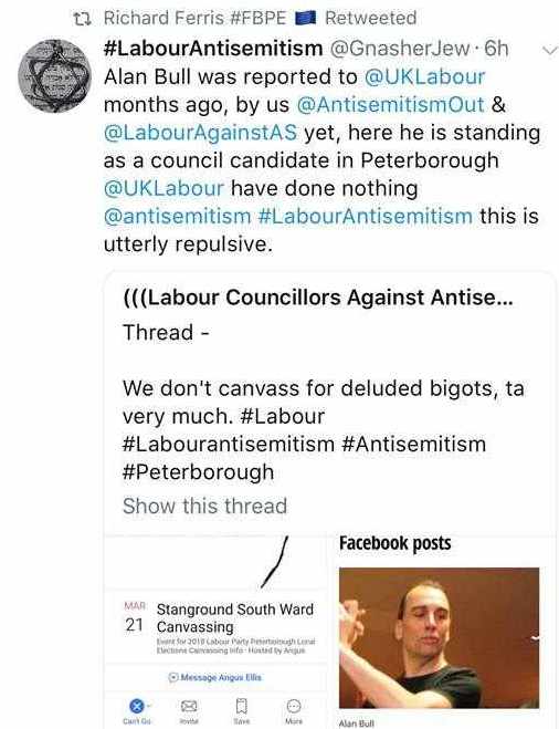 holocaust denier. He has been subject to vicious and vitriolic abuse from the trolls of Labour Against AntiSemitism @LabourAgainstAS, most of whom aren’t even in the Labour Party.