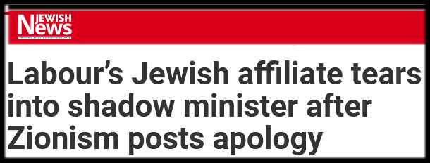 The JLM, British branch of the Israeli Labour Party, which pretends to be concerned with anti-Semitism when its sole concern is Israel and Zionism, decided to go for Moyle. The Jewish News headline was Labour’s Jewish affiliate tears into shadow minister after Zionism posts apology
