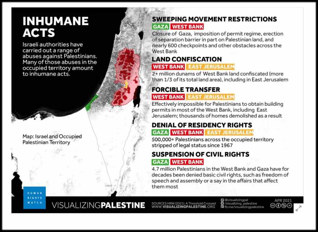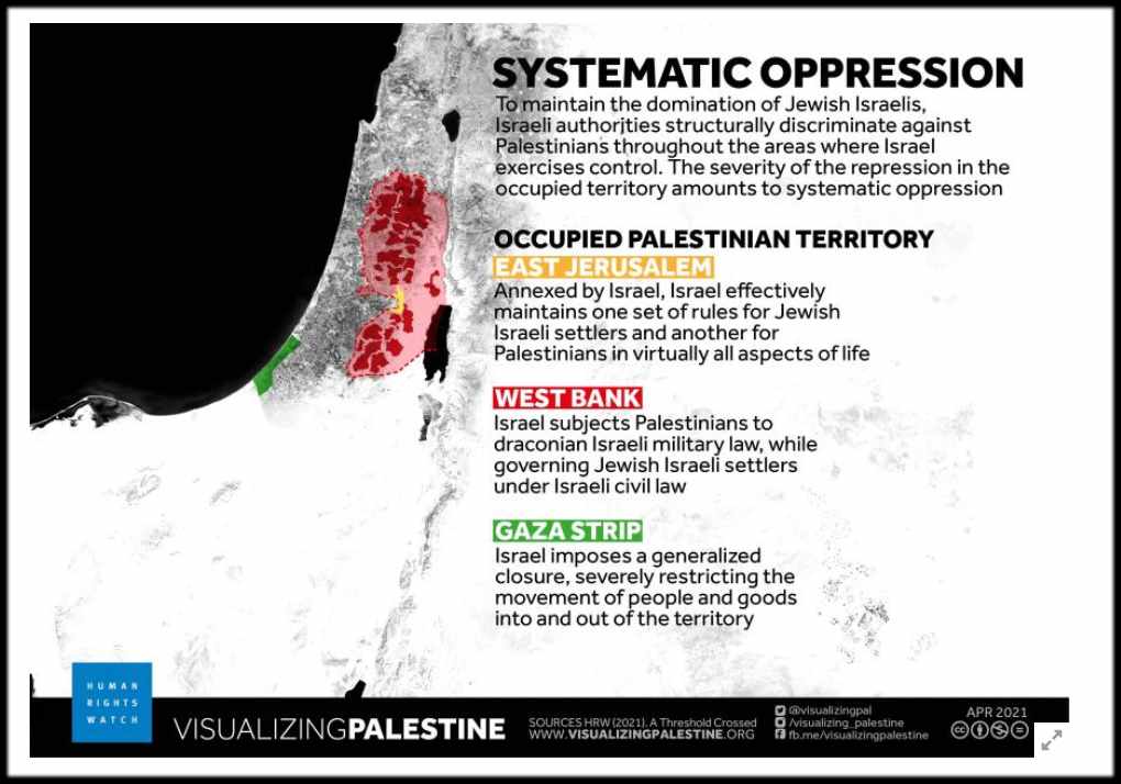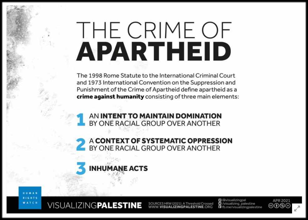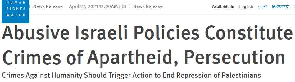 In Abusive Israeli Policies Constitute Crimes of Apartheid Persecution HRW levelled 3 main charges that together constitute irrefutable proof of apartheid:
