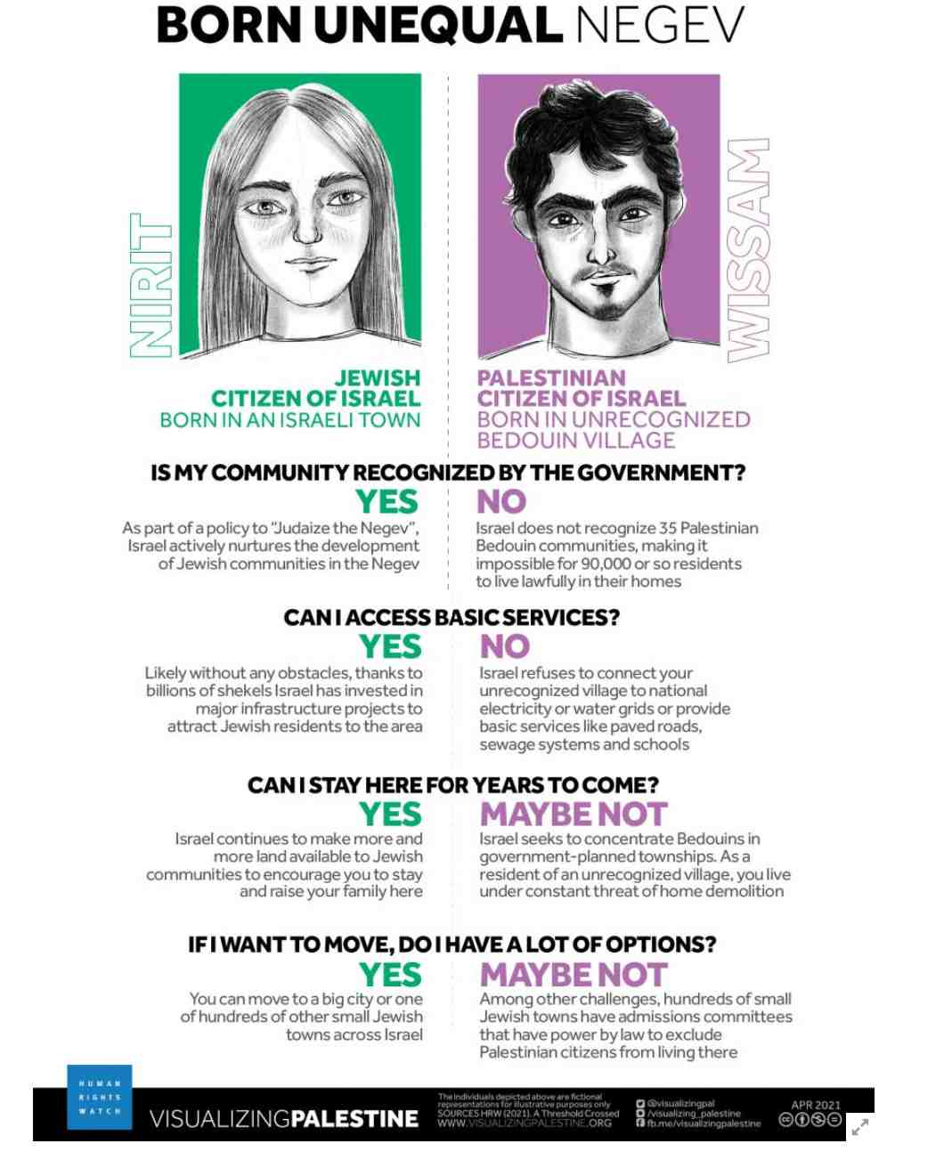 What is quite remarkable about the HRW report, just like that of Btselem before it, is that they don’t hesitate to call out the racism against Israel’s Palestinian citizens which includes: