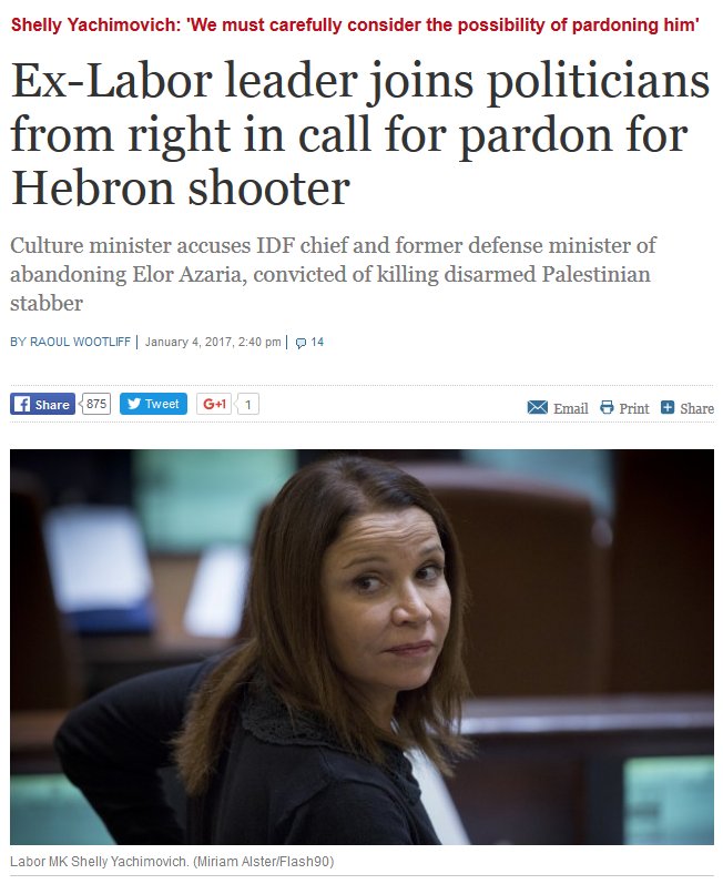 pardon by Zionist Union’s Shelly Yachimovich, former head of the Labour Party.