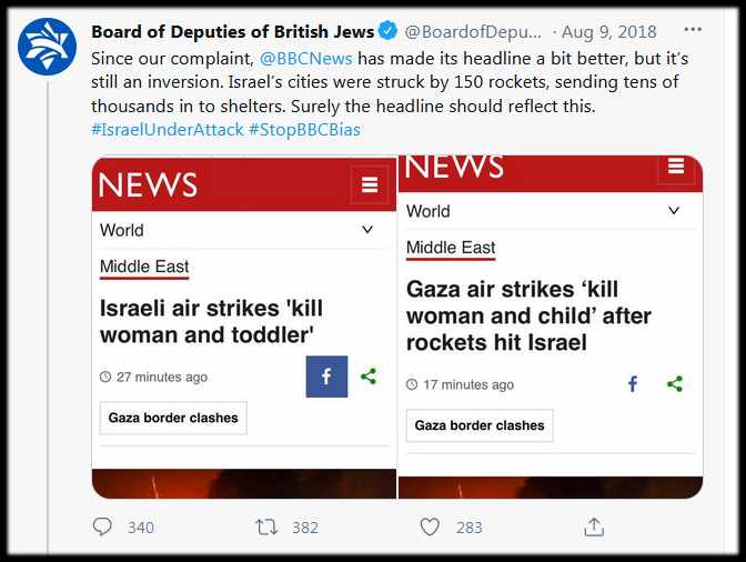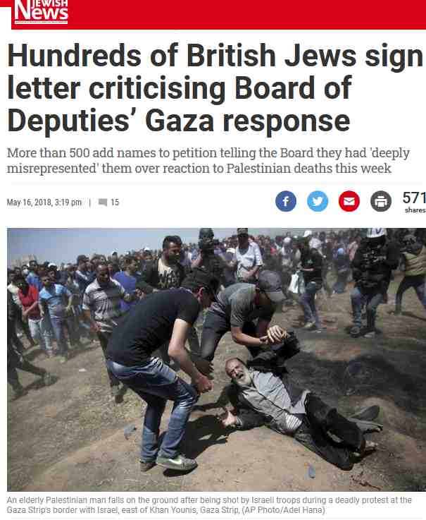 The Board also boasted of changing a BBC headline about an Israeli air strike on Gaza that killed a woman and her child. What one wonders has Gaza got to do with Britain’s Jews? The Board also defended the murder by Israel of snipers of Palestinian demonstrators in Gaza killing 300 demonstrators and 50 children.