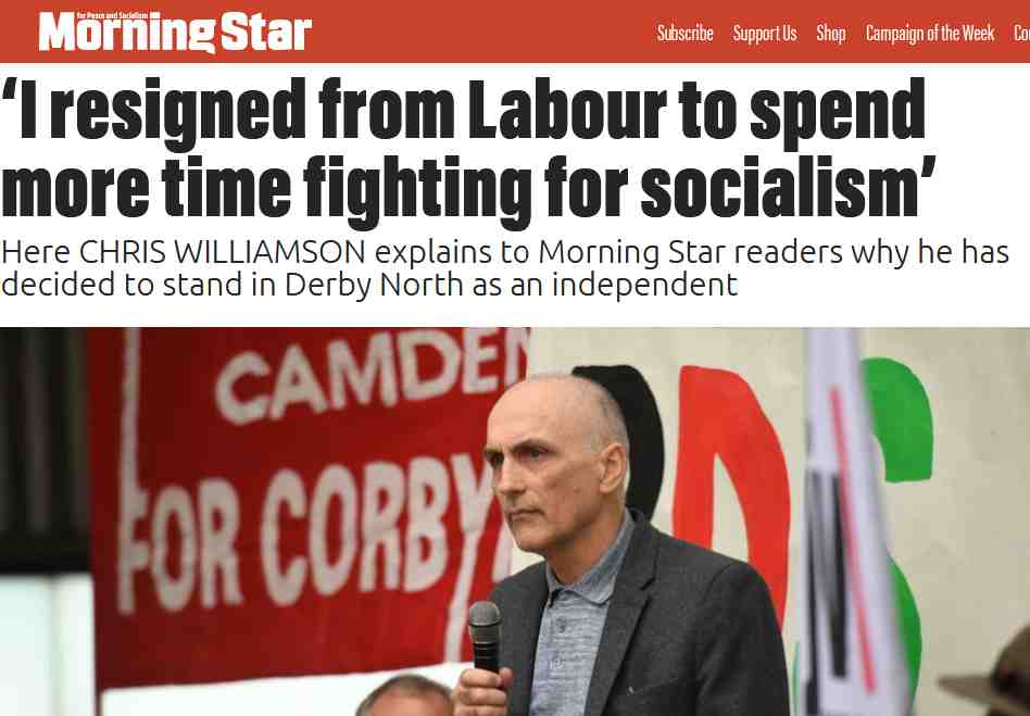 You are responsible for Chris standing as an independent socialist for Derby North. Chris resigned from Labour to spend more time fighting for socialism. It should have been Margaret Hodge who was suspended. Chris should have been a Labour candidate.