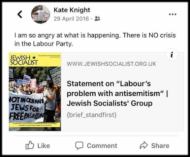 Kate’s offence is denying that there ever was an anti-Semitism problem in the Labour Party, a point of view held by 70% of Labour members. They call it ‘denialism’. Free speech on the issue has been banned. Israeli ‘democracy’ has now been imported into the Labour Party. Racists like Daniel Yates and Peter Kyle, Hove’s MP, know very well that there is no substance to these allegations of anti-Semitism, hence they seek to ban any contrary narrative.