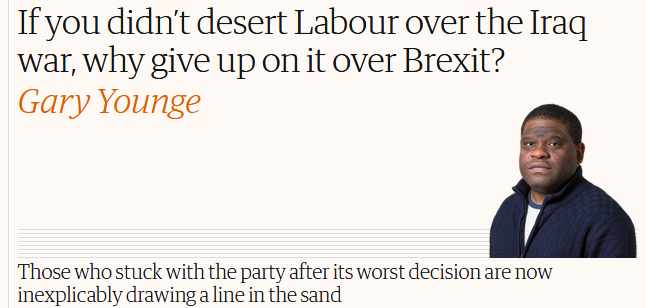 I read with interest your recent article ‘If you didn’t desert Labour over the Iraq war, why give up on it over Brexit?’ In it you stated that: