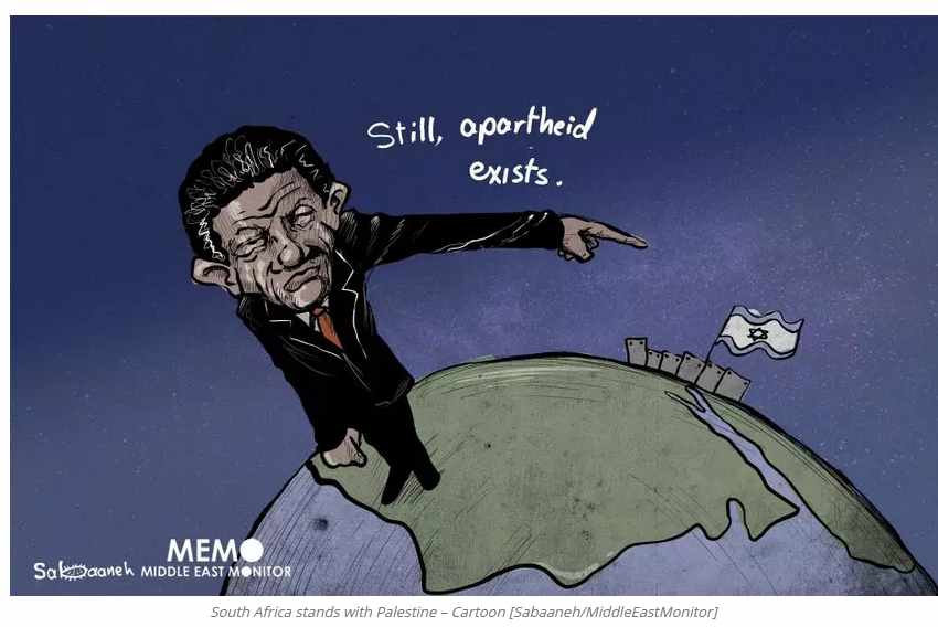 “I have witnessed the systemic humiliation of Palestinian men, women and children by members of the Israeli security forces. Their humiliation is familiar to all black South Africans who were corralled and harassed and insulted and assaulted by the security forces of the apartheid government.”