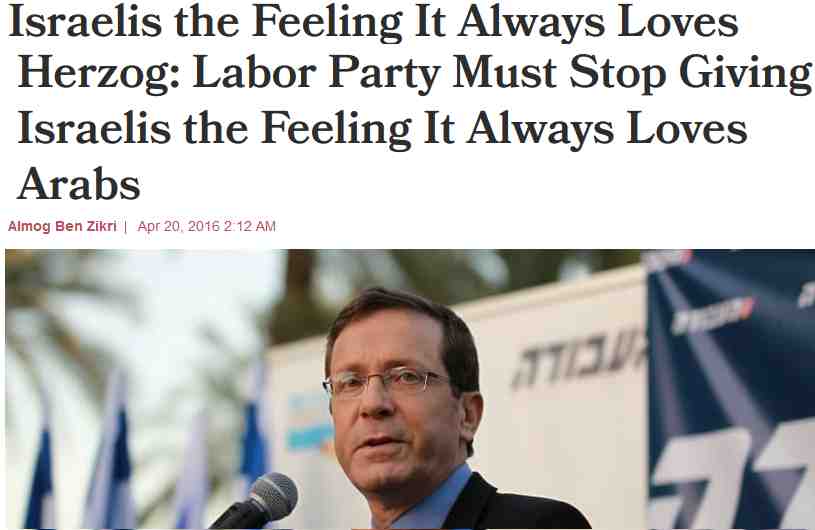 | previous leader of Israeli Labour Party – Isaac Herzog afraid Labour might be seen as an ‘Arab lovers’ party |