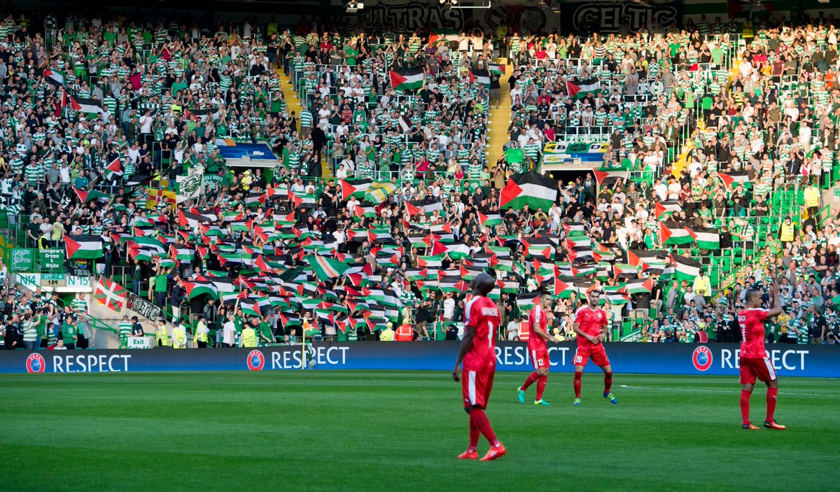 night when hundreds of Palestinian flags were flown by fans in defiance of