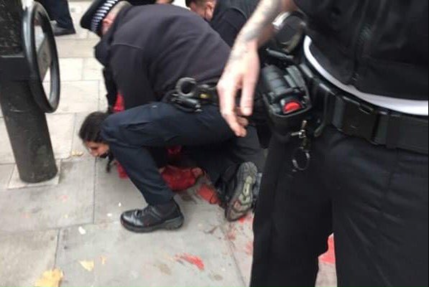 Pal Action activist Huda Ammori being arrested