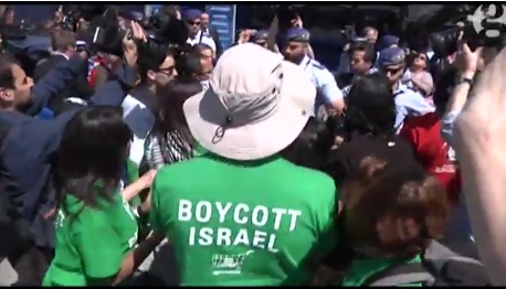 | Palestinian football head Jibril showing Israel a red card – but then changing the colour! |