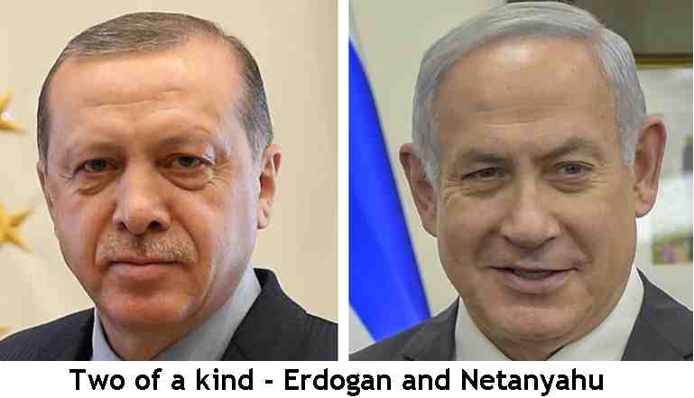 These meetings occurred after Turkey, under the leadership of Erdoğan, committed the biggest massacre of its Kurdish population since the 1990s, displacing thousands and killing hundreds, including children. Meanwhile this week, Erdoğan called Netanyahu a “tyrant who slaughters 7-year-old Palestinian kids.”So, let’s look at the similarities between Erdoğan and Netanyahu and the countries they’re leading