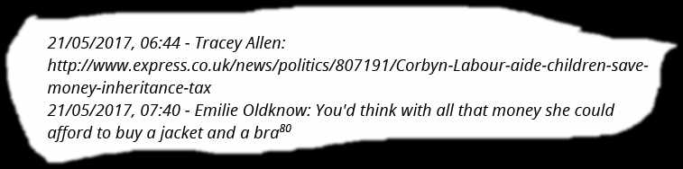 Lisa Forsyth believed that Corbyn had nothing to do with the victory in the Oldham by-election in December 2015 and hoped that Theresa May would give him ‘the boot’ at the local elections in May 2016:
