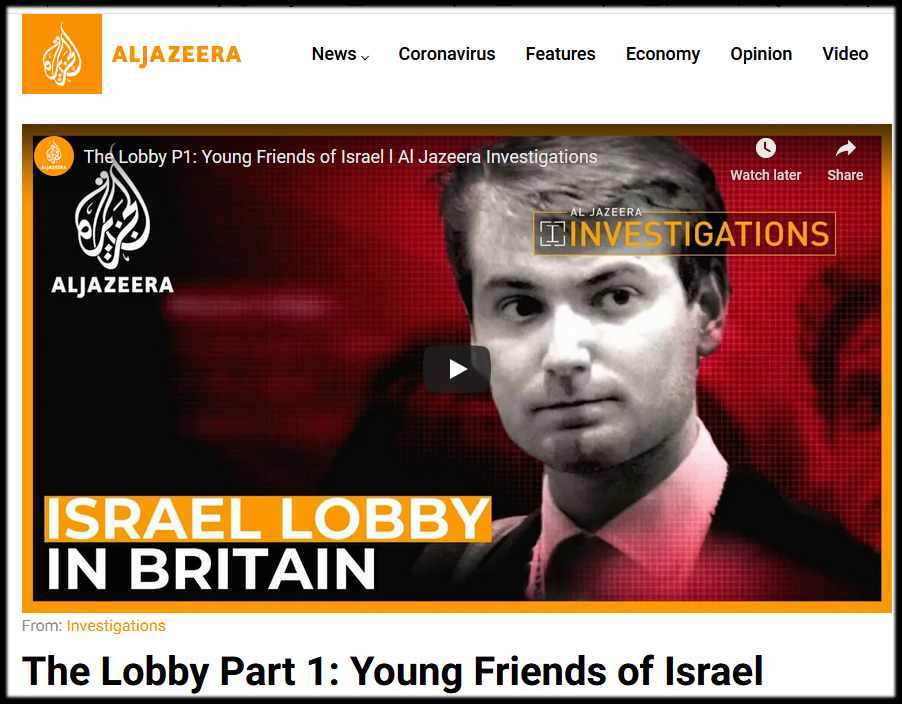 Jones does not mention The Lobby, an undercover documentary by Al Jazeera which showed that the Israeli Embassy was deeply involved in the anti-Semitism crisis. Shai Masot, from Israel’s Ministry of Strategic Affairs, was busy trying to bring down politicians such as Alan Duncan, the Deputy Foreign Minister. Michael Rubin, former Chair of Young Labour and Parliamentary Officer for LFI was coordinating his activities with the Israeli Embassy.