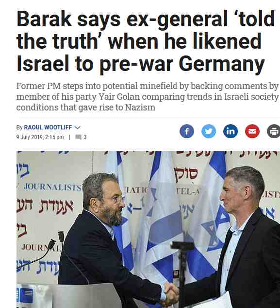 Israelis such as Yair Golan, former Deputy Chief of Staff to Professors Ze’ev Sternhell, a child survivor of Premszyl ghetto and Yehuda Elkana, a child survivor of Auschwitz, all made comparisons between Israel and Nazi Germany. According to Jones their only purpose being ‘to bait Jews with the memory of their most murderous persecutors.’ Jones disregards the far more common Zionist comparisons between Palestinians and Nazis when for example Menachem Begin compared Yasir Arafat to Hitler in his bunker.