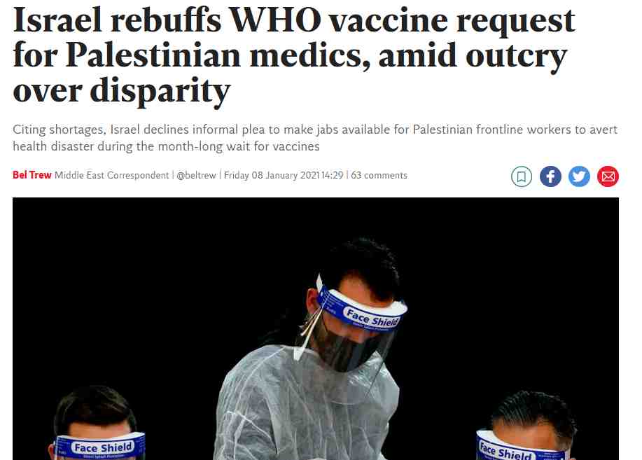 These comments, vile as they are, are insignificant compared to Starmer’s silence over Israel’s refusal to provide vaccines to the Palestinians under occupation.
