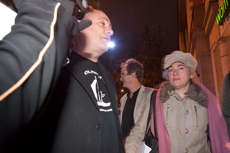 Our presence led to almost an hour of lively discussion on the pavement outside the venue, although it was notable that – despite Atzmon’s complaints that we are trying to close down debate and interfere with his freedom of speech – many of those coming to listen to him refused to even look at the proffered leaflets. Atzmon emerged from the building himself to join in the fray, perhaps attracted by the presence of a documentary film-making camera crew.