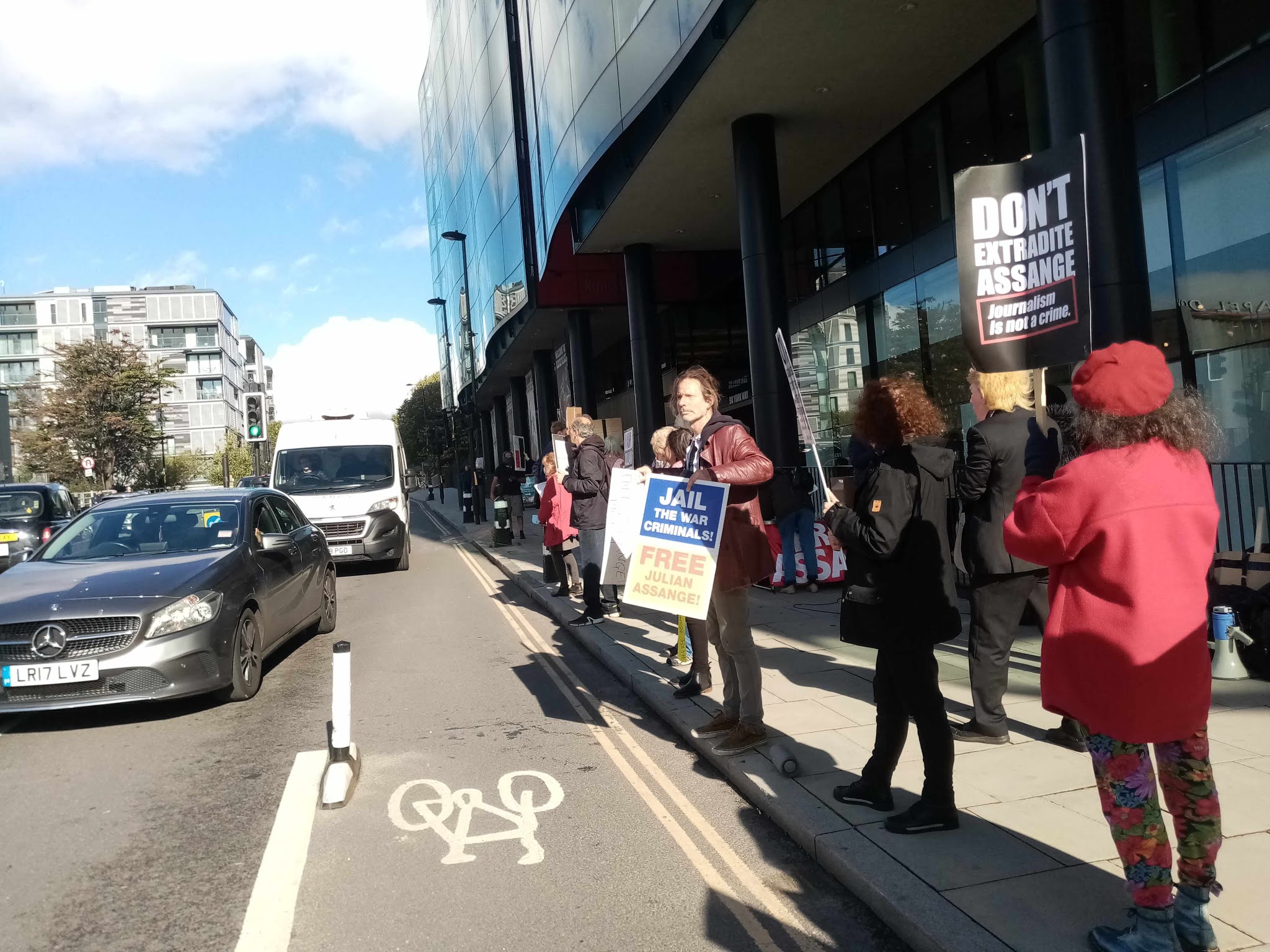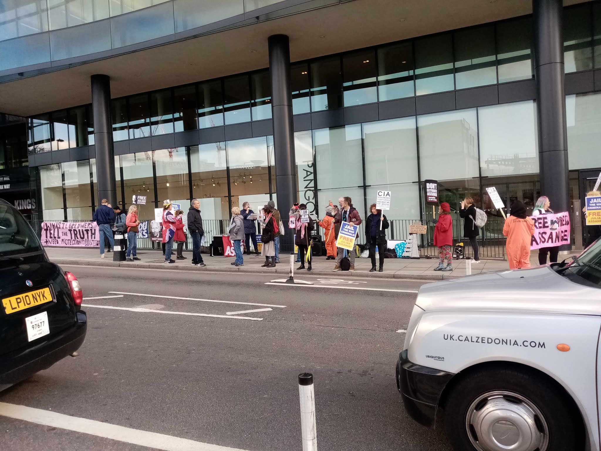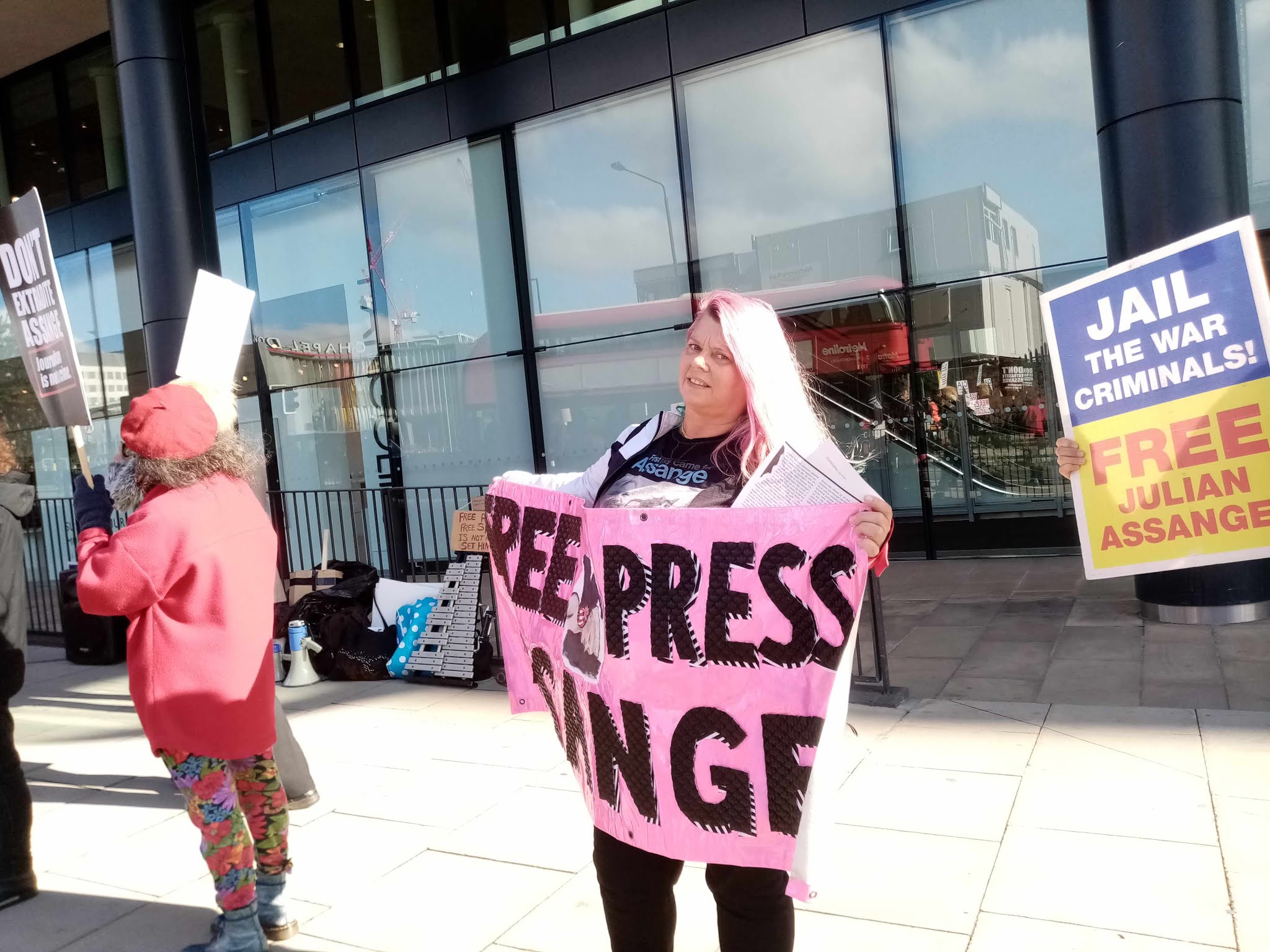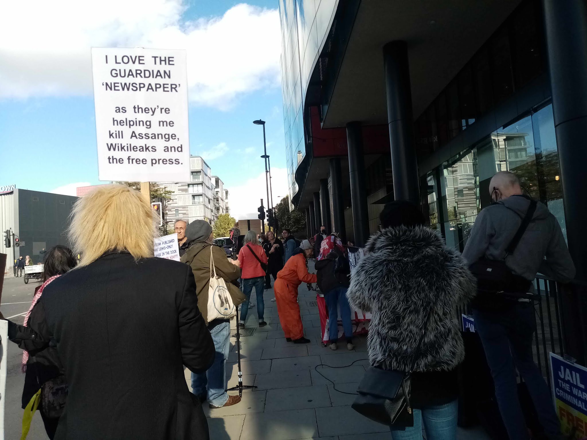 Picket of Guardian Calls for their Yellow Journalists and Luke Harding to Start Telling the Truth About Julian Assange Rather Than Being a Conduit for the Security State