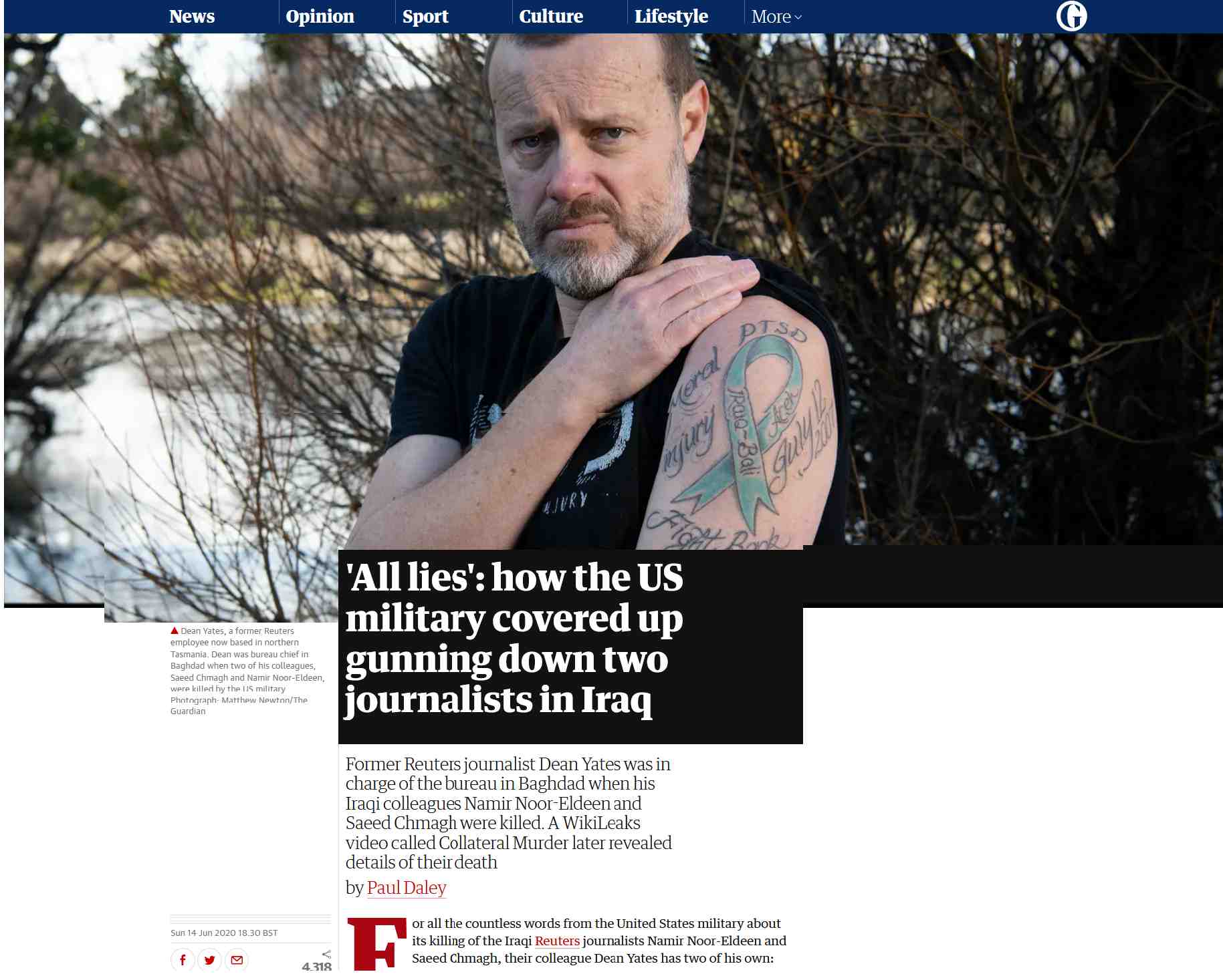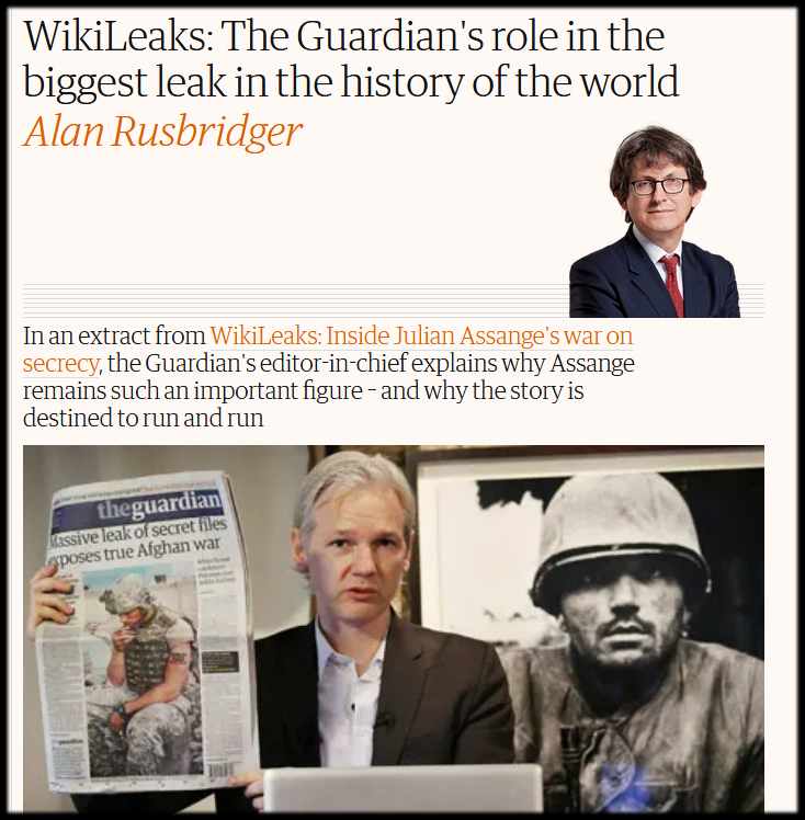 The Guardian and its assorted collection of misfits going by the name of ‘journalist’ profited enormously from Wikileaks. The Guardian had a series of front page headlines, see here and here, especially regarding the attack by a US helicopter that murdered 16 people including 2 Reuters journalists. Even this past June Paul Daley ran a large feature ‘All lies’: how the US military covered up gunning down two journalists in Iraq