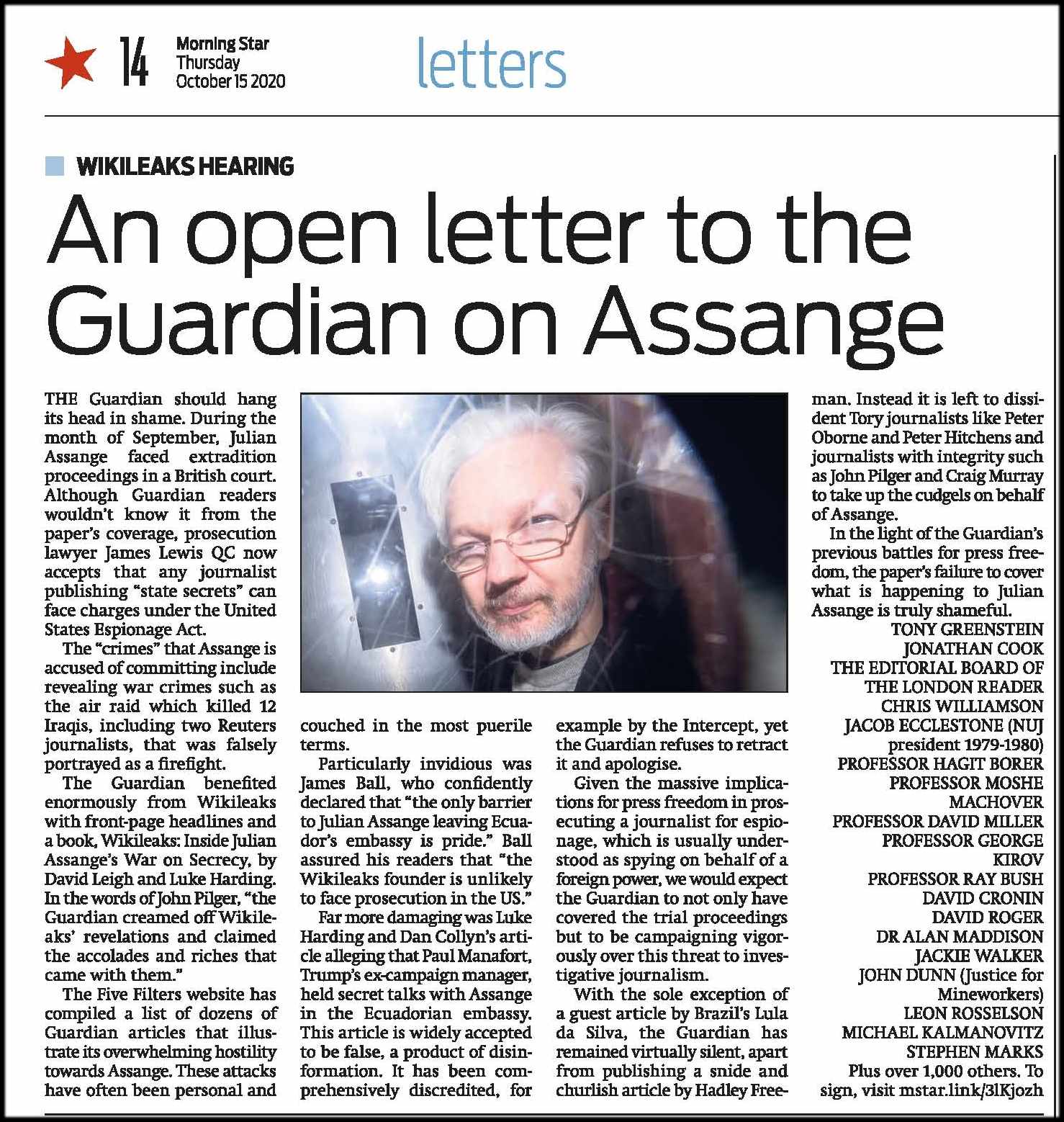 Guardian Refuses to Print Letter Signed by over 1,600 people criticising their lying, dishonest coverage as tame leftists Owen Jones & George Monbiot Steer Clear of Assange