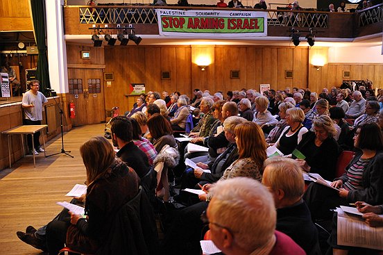 Even Gill Kaffash chose not to mention anything to do with holocaust and instead mounted a free speech argument, coupled with the assertion that we stick to Palestine not extraneous issues. But speaker after speaker, with the exception of Exeter PSC’s constitutionalist Dave Chappell (FBU), made it clear that it was not possible oppose the racism that Palestinians suffer from and yet tolerate holocaust deniers and their associates. A member of the Communications Workers Union, whose name I didn’t catch, made this clear in a particularly impassioned contribution, as did Roland Rance from Jews 4 Boycotting Israeli Goods and other speakers.